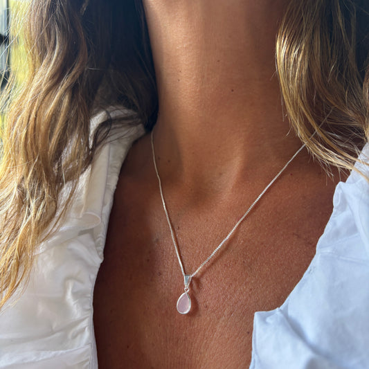 COLLAR DROP ROSADO- BAÑADO EN PLATA
