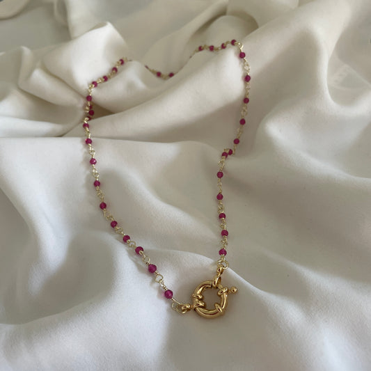 COLLAR DROP ROSADO- BAÑADO EN ORO