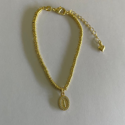 PULSERA VIRGEN DE LOS RAYOS CIRCONES - BAÑADO EN ORO