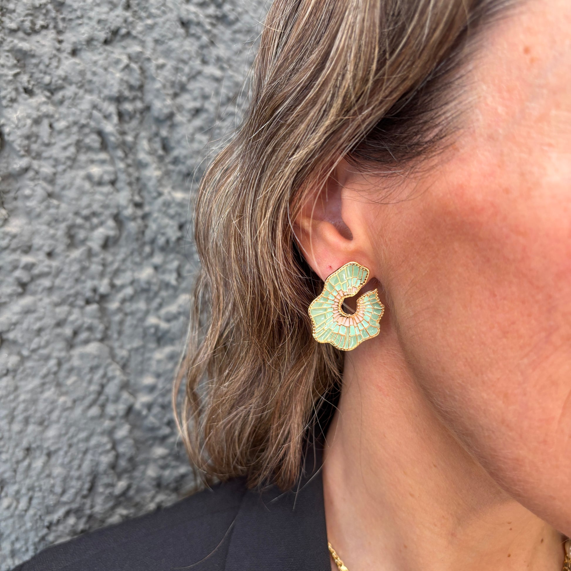 Material: enchapados en oro 18k y esmaltado a mano. Libre de níquel e hipoalergénicos.