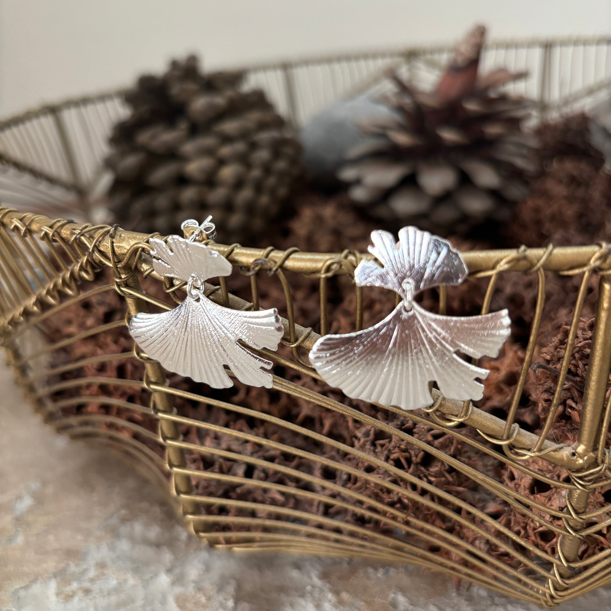 Los aros Two Ginkgo están inspirados en el mítico árbol Ginkgo Biloba, aportando un toque floral a tu look. Son una pieza muy ligera. Su estructura colgante aporta un suave movimiento al conjunto.