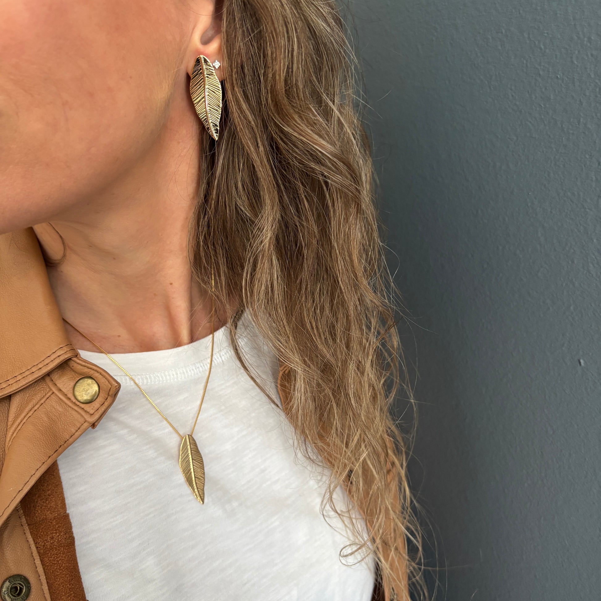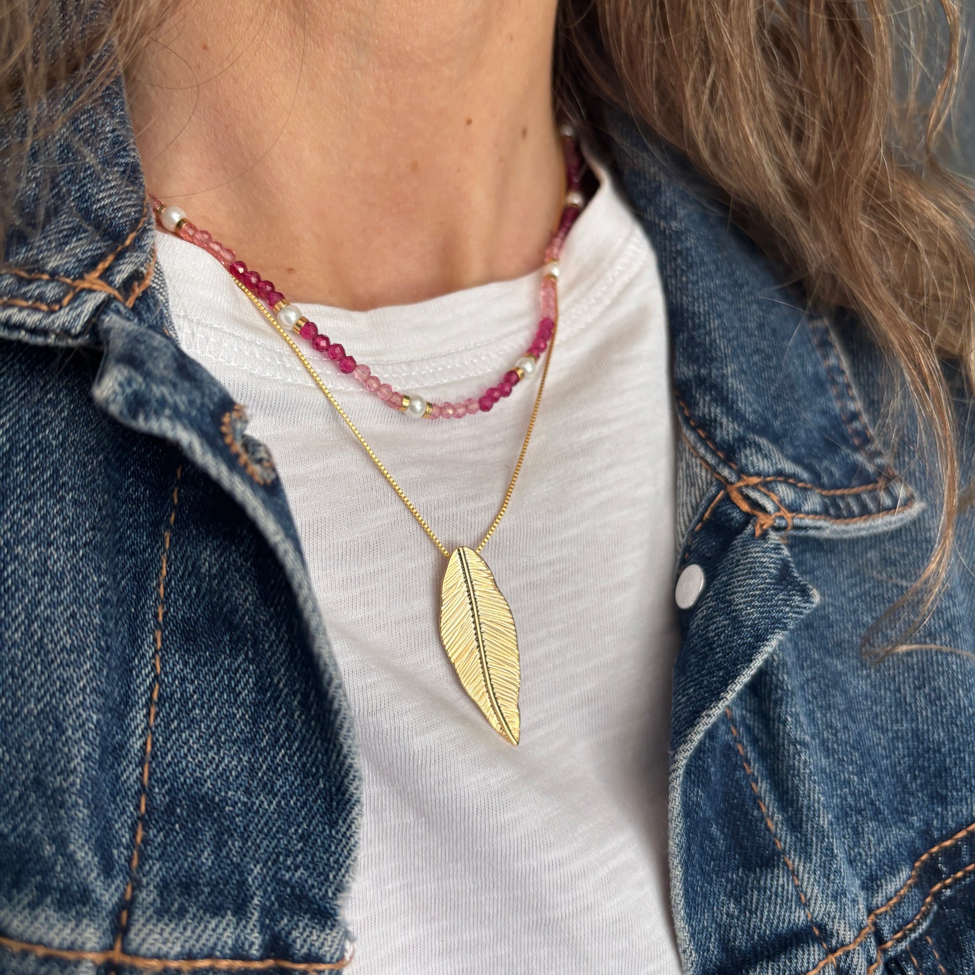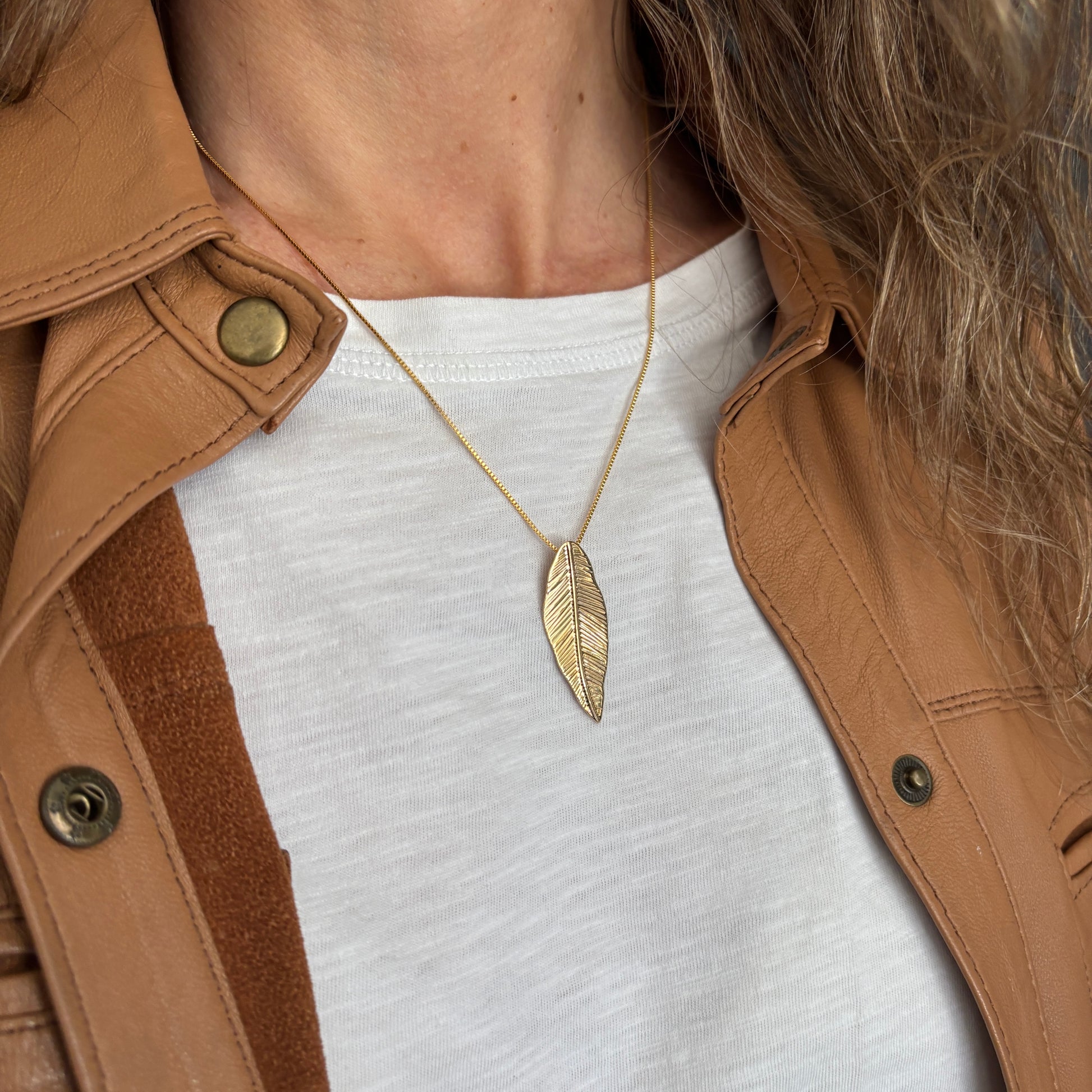 El Collar Amazonas está formado por una fina cadena con un colgante de hoja. Muy delicado y elegante para acompañar tu look de día o de noche.