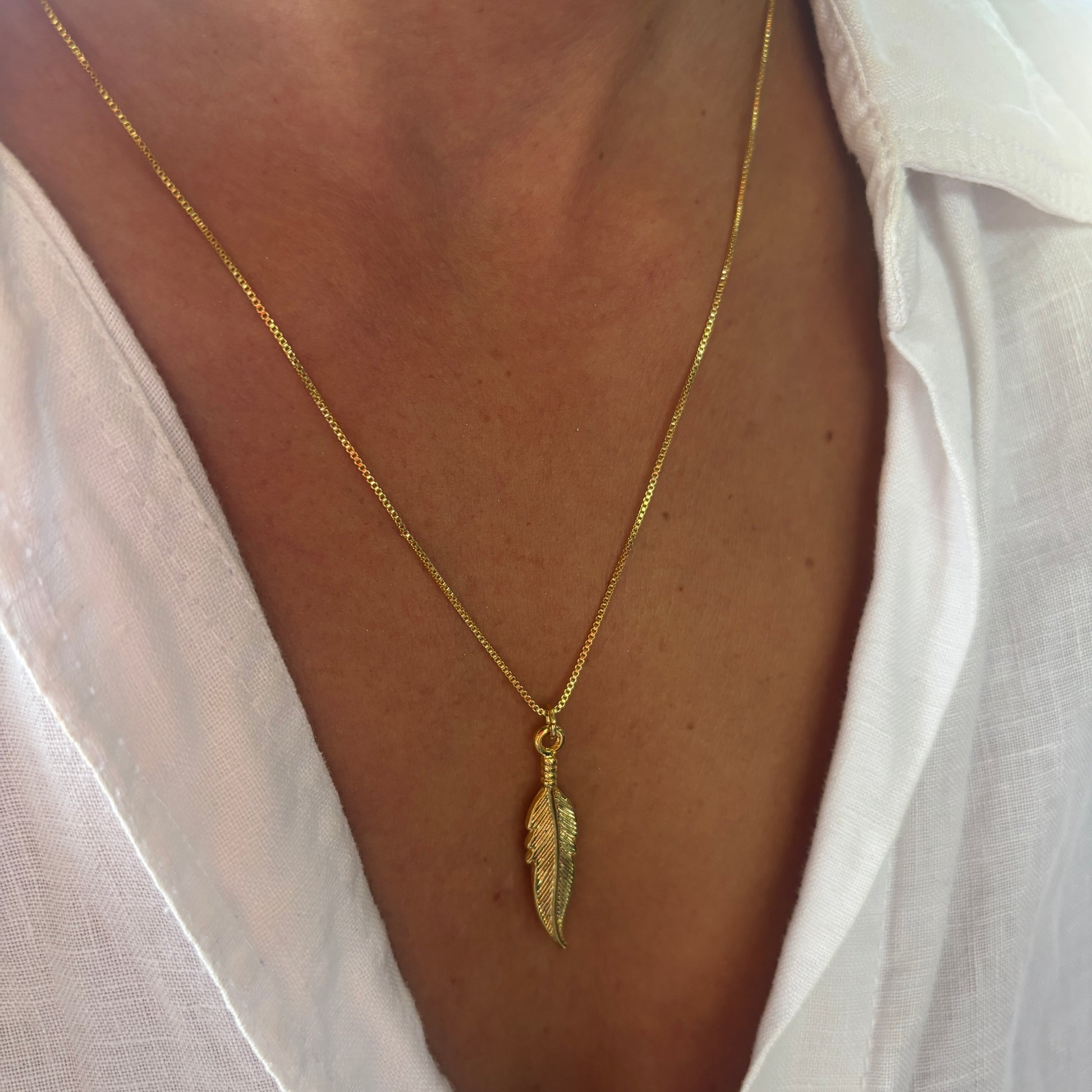 El Collar Moana, es una joya que evoca libertad, ligereza y conexión con lo esencial. La pluma simboliza soltar, confiar y dejarse llevar, recordándote que a veces lo más poderoso es fluir.